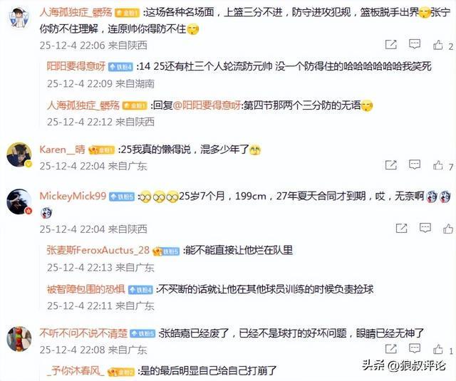 有球迷调侃说道:“这场各种名场面,上篮三分不进,防守进攻犯规,篮板脱手出界张宁你防不住理解,连原帅你得防不住”。
